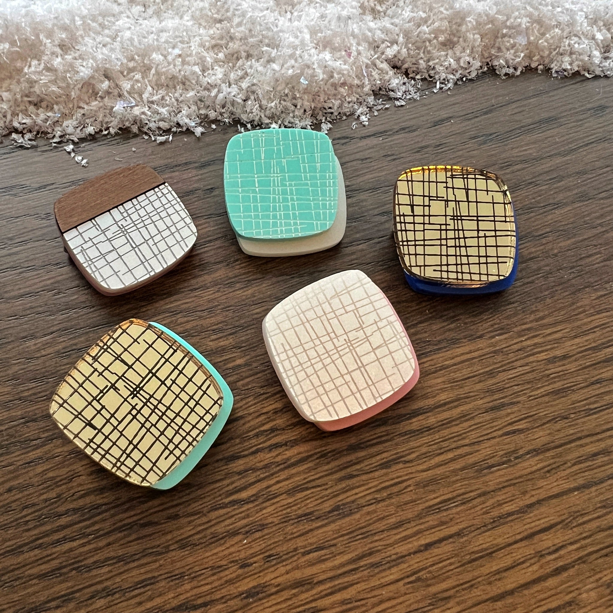 Double-layer MCM Pebble Brooch - Various Colours