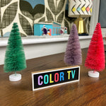One of a kind. Miniature ornament inspired by the vintage signs advertising COLOR TV that you sometimes see along the American roadside, boasting in-room colour television.