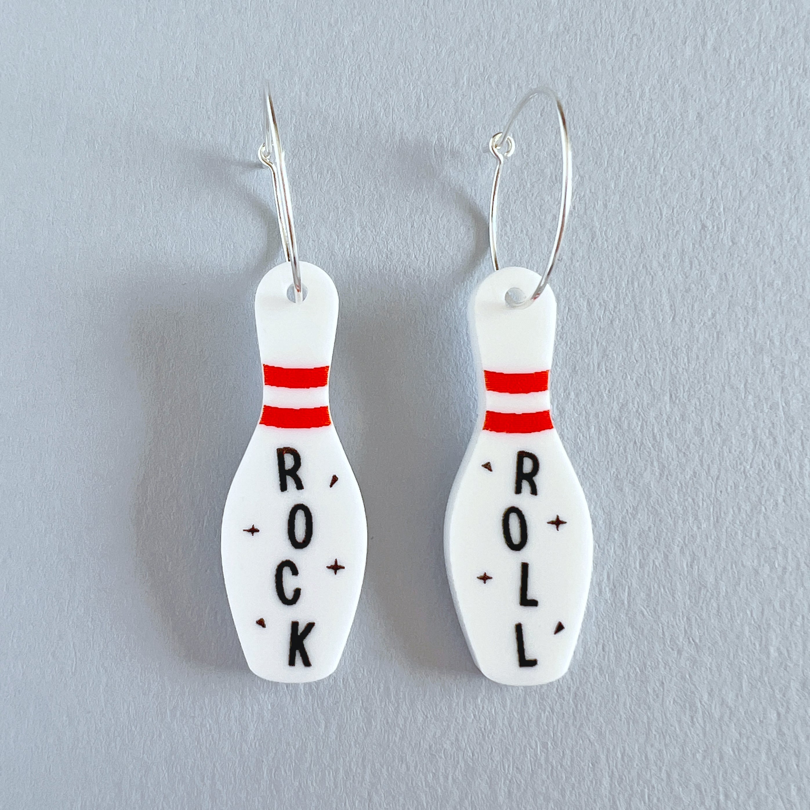 Rock n Roll souls will love these retro bowling pin earrings. They're the perfect accessory for gigs, that vintage festival you've had your eye on and of course... ten pin bowling trips with pals.