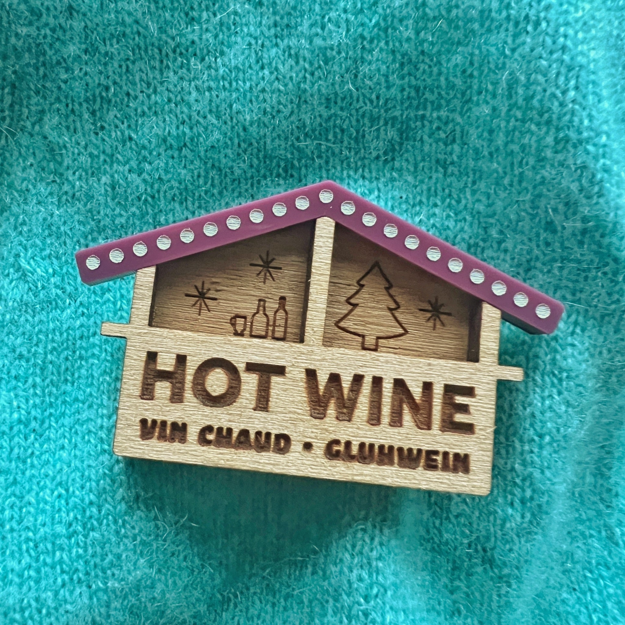 This tiny Christmas market hut brooch brings all the cosy vibes. We've laser cut these in a mix of wood and acrylic, with etched details - including Christmas tree and tiny wine bottles.