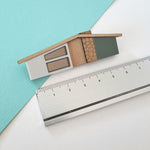 Classic Tiny Scenic house brooch with a soft green accent panel.