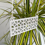The breeze block shape is the iconic 'empress' diamond pattern - a nostalgic motif for retro mid-mod style. Laser cut in a single layer of acrylic with thin etched lines to subtly pick out the individual blocks.