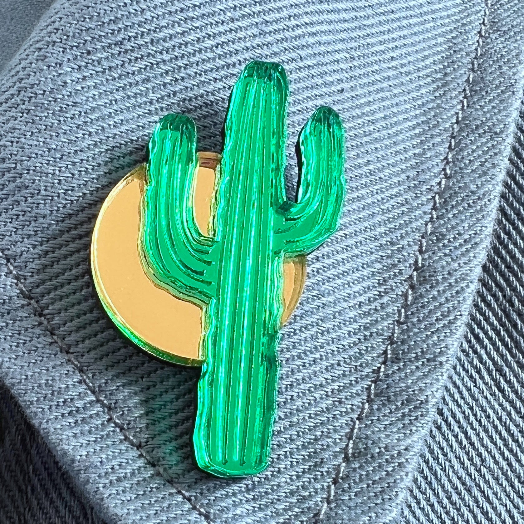Inspired by our trip to the Saguaro National Park in Arizona, it's made with a mix of laser etched mirrored Perspex (in gold and emerald green) and backed with a thin layer of walnut.