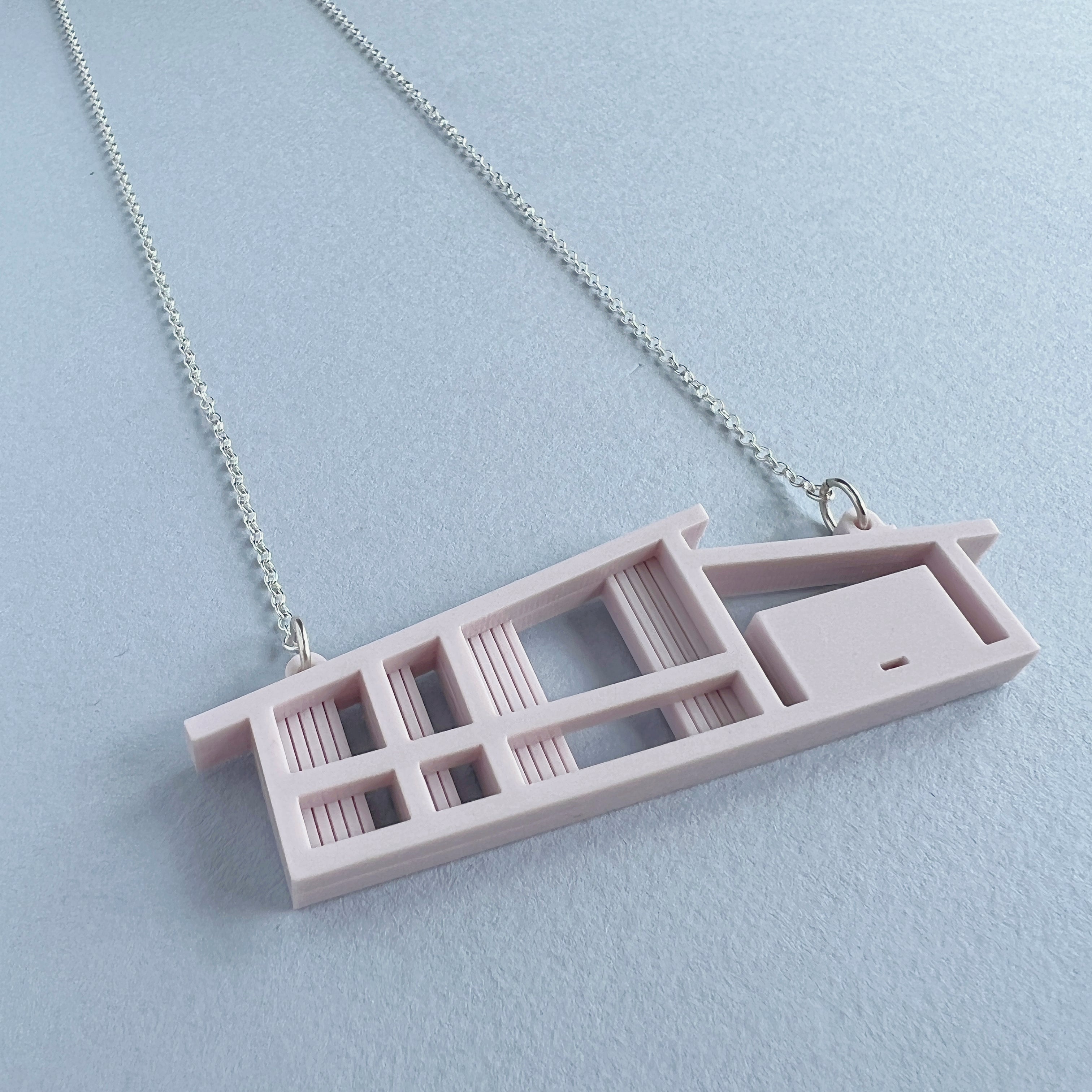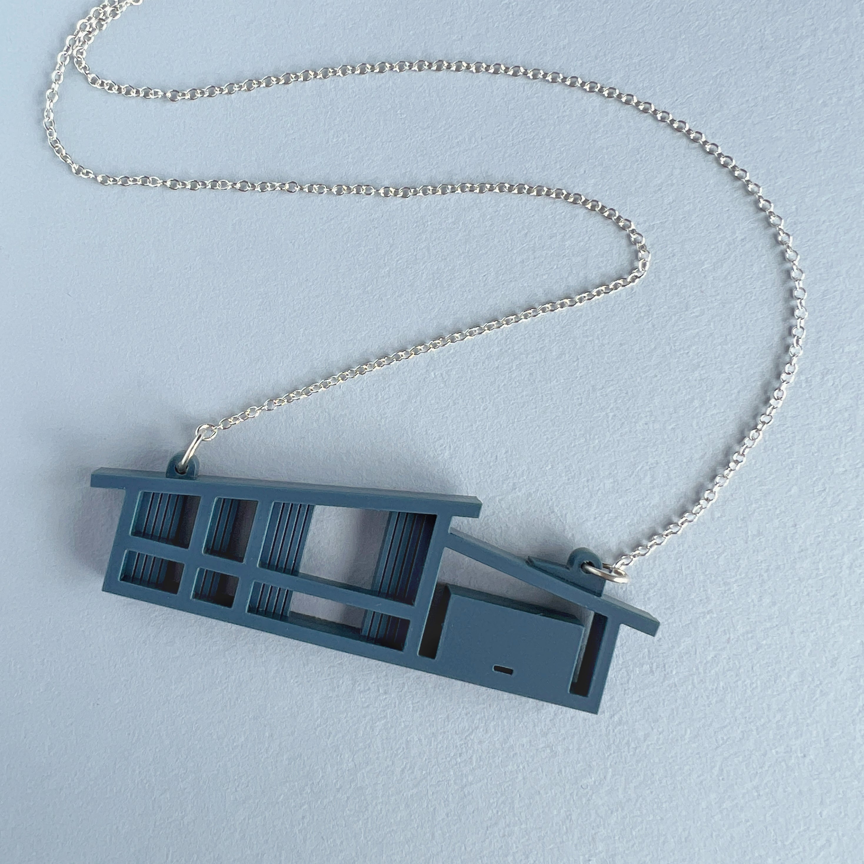 Offset Roof Blueprint House Necklace – Marshmallow or Navy