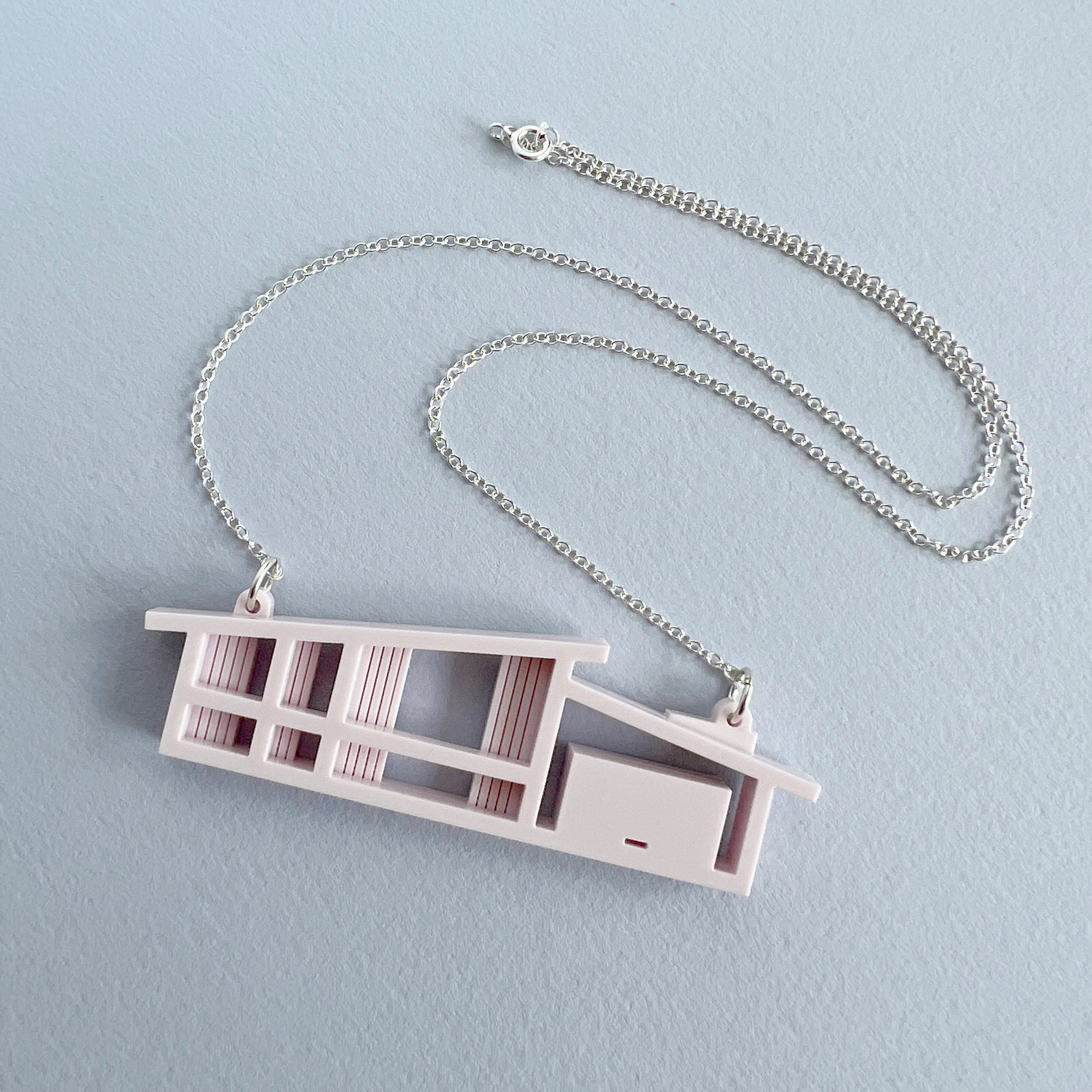 This dream modern laser cut house necklace effortlessly gets across your modernist style credentials. Cut in two layers to create depth with etched details - this monochrome piece is elegant and architectural.